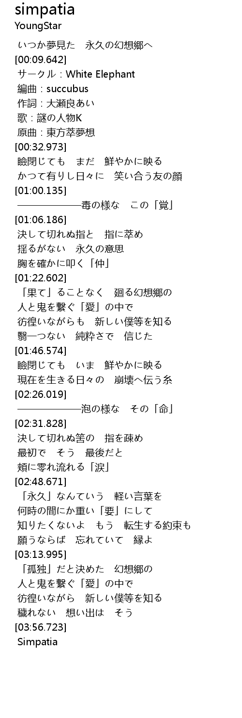 | [03:51.773] | 穢れない 想い出は そう |