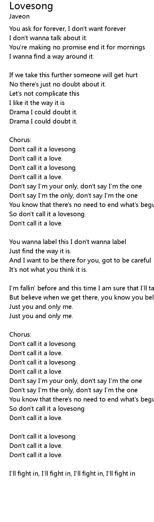 | So don't call it a lovesong | |