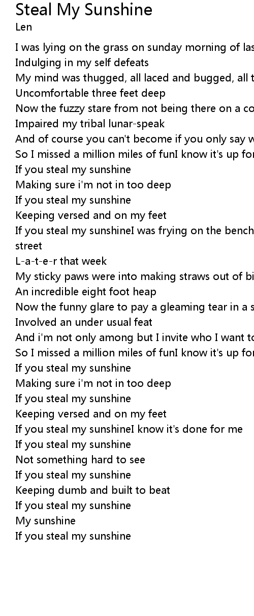 If you steal my sunshineI was frying on the bench slide in the park across the street |
