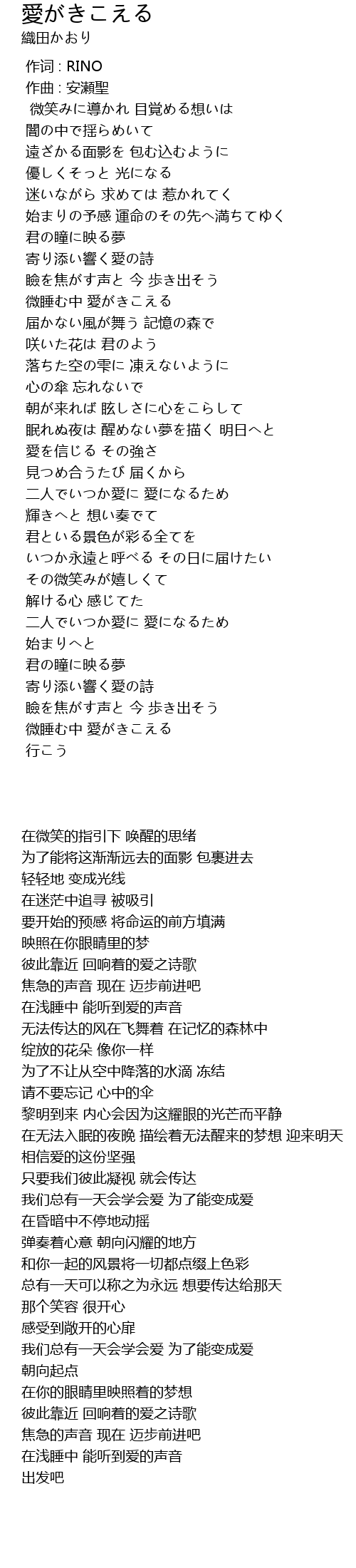 | [04:16.324] | 彼此靠近 回响着的爱之诗歌 |