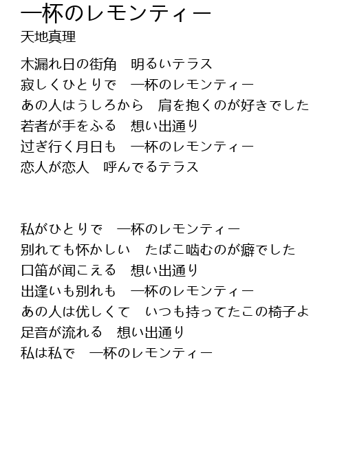 | 过ぎ行く月日も 一杯のレモンティー | |
