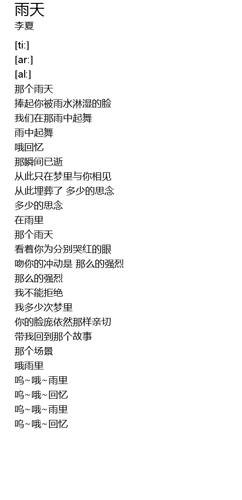 | [00:41.13] | cóng cǐ zhī zài mèng lǐ yǔ nǐ xiāng jiàn |