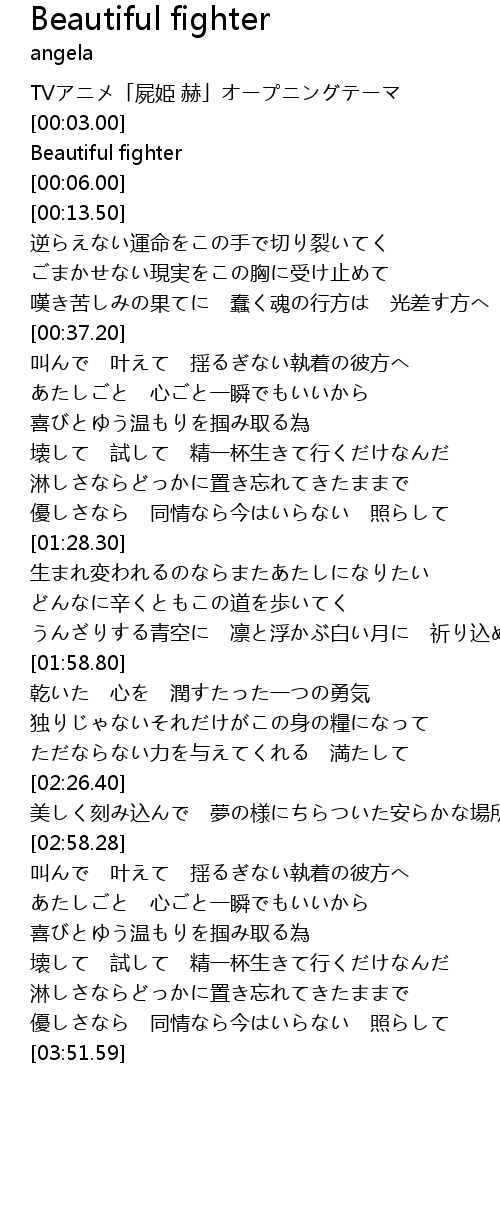 | [00:15.40] | 逆らえない運命をこの手で切り裂いてく |