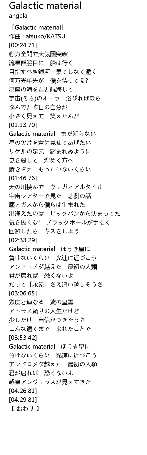 | [00:38.80] | 目指すべき銀河 果てしなく遠く |