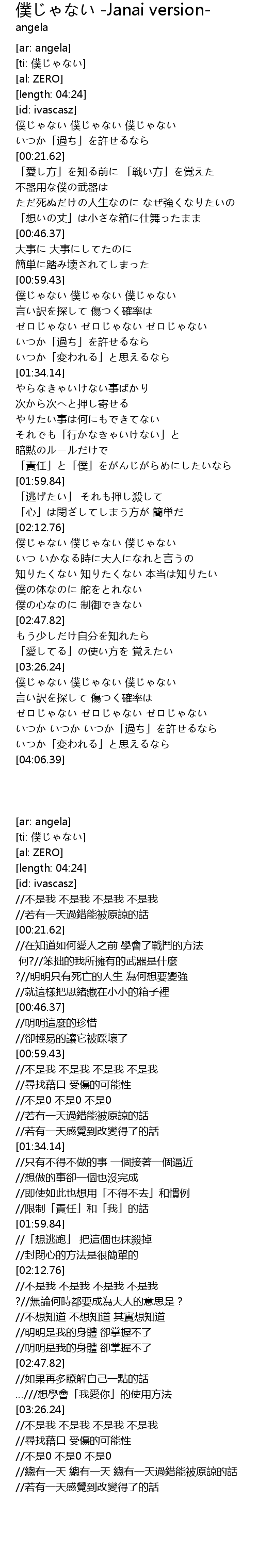 | [03:41.98] | ゼロじゃない ゼロじゃない ゼロじゃない |
