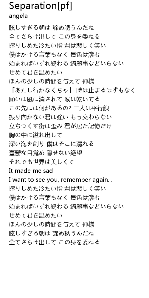 | 歌曲 | Separation[pf] |
