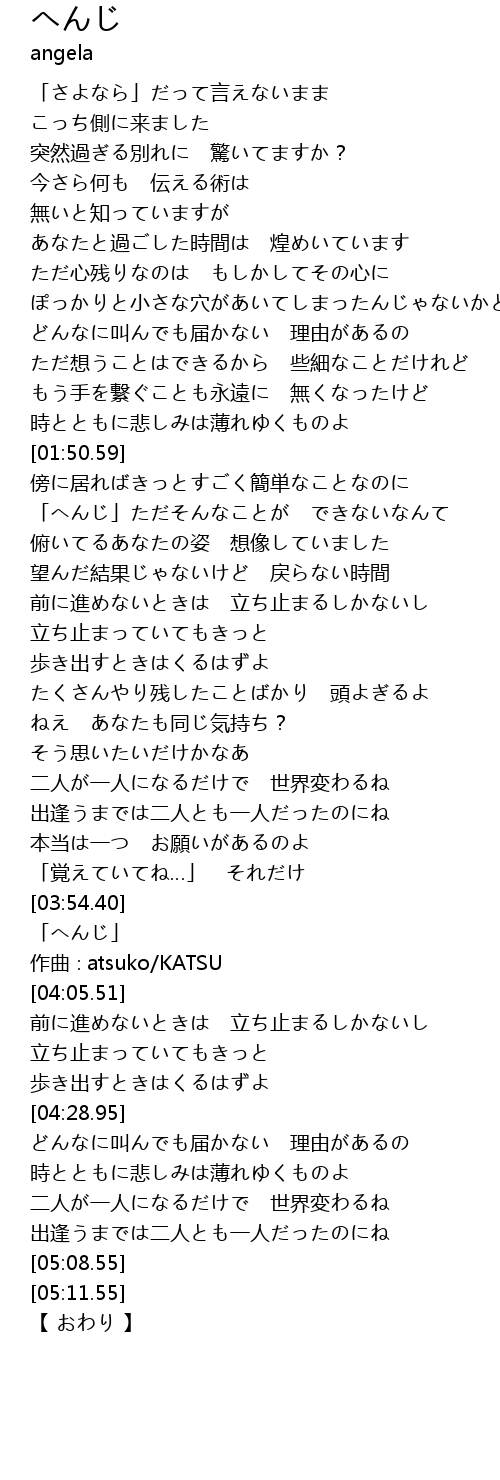 | [03:56.51] | 「へんじ」 |