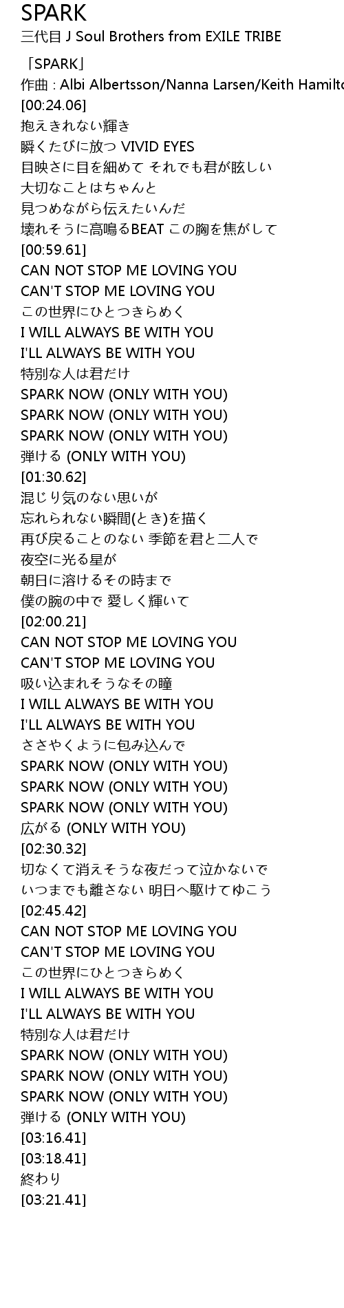 | [03:01.26] | SPARK NOW (ONLY WITH YOU) |