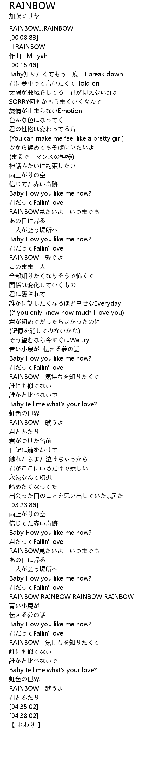 | [03:55.87] | RAINBOW RAINBOW RAINBOW RAINBOW |