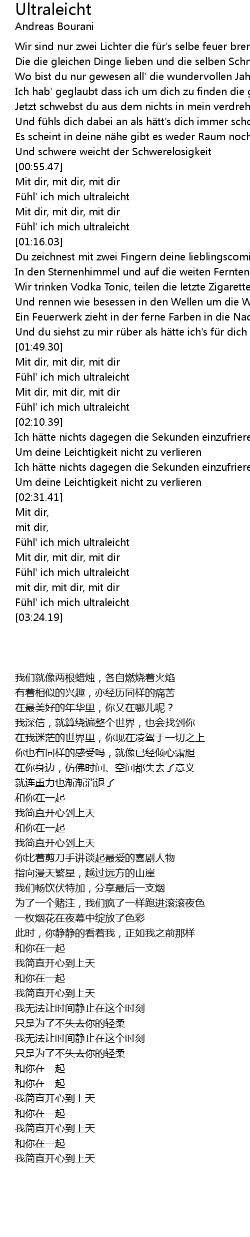 | [01:54.71] | Fü hl' ich mich ultraleicht |