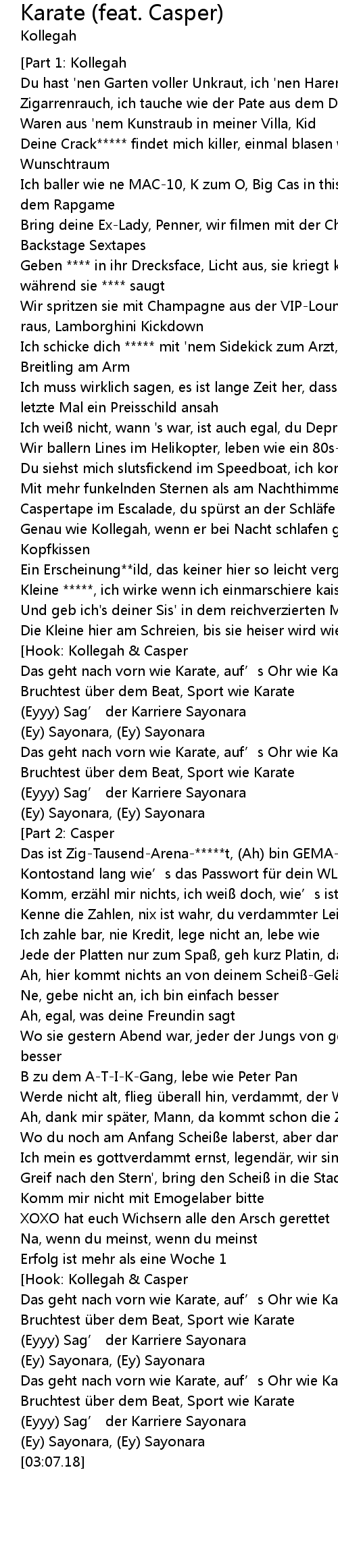 | [03:00.58] | (Eyyy) Sag’ der Karriere Sayonara |