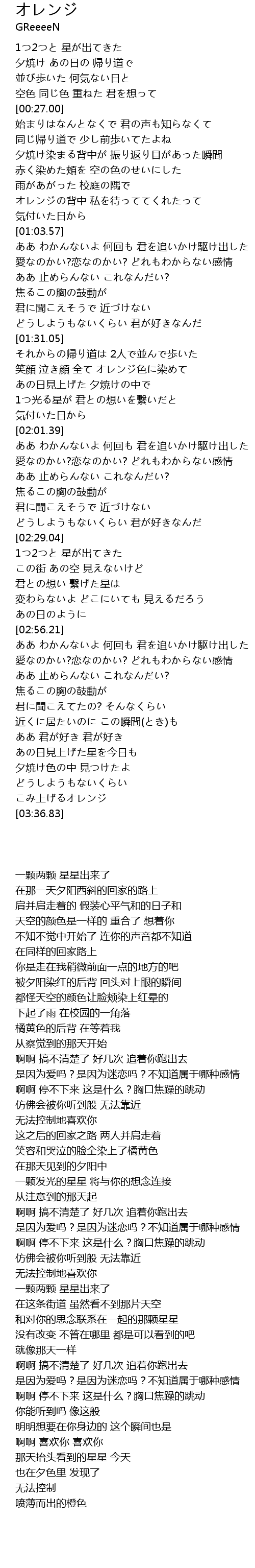 | [03:32.82] | こみ上げるオレンジ |