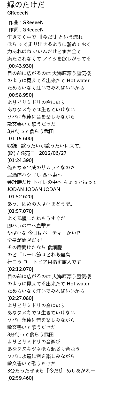| [00:01.00] | zuo ci : GReeeeN |