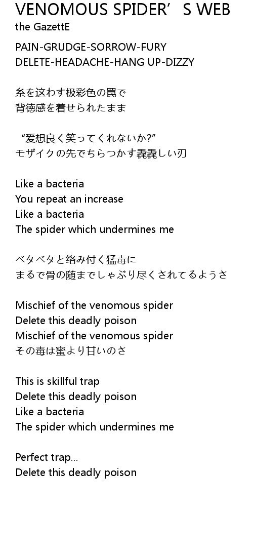 | 歌曲 | VENOMOUS SPIDER’S WEB |