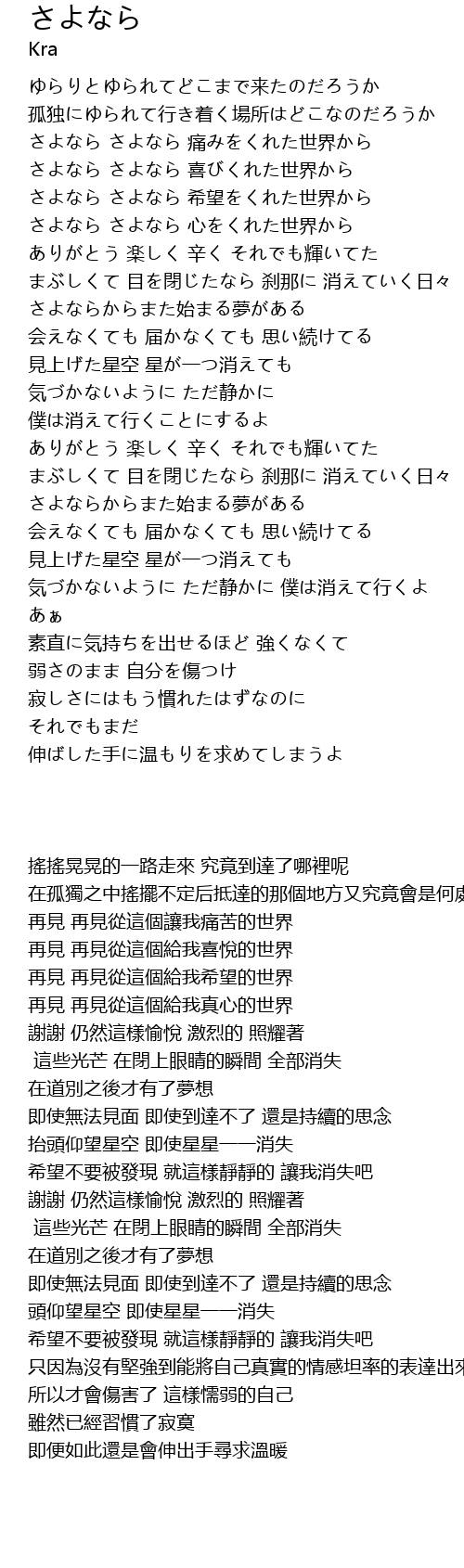| [00:59.360] | 再見 再見從這個給我真心的世界 |