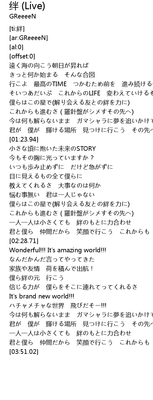 | [03:35.80] | 君と僕ら 仲間だから 笑顔で行こう これからも |