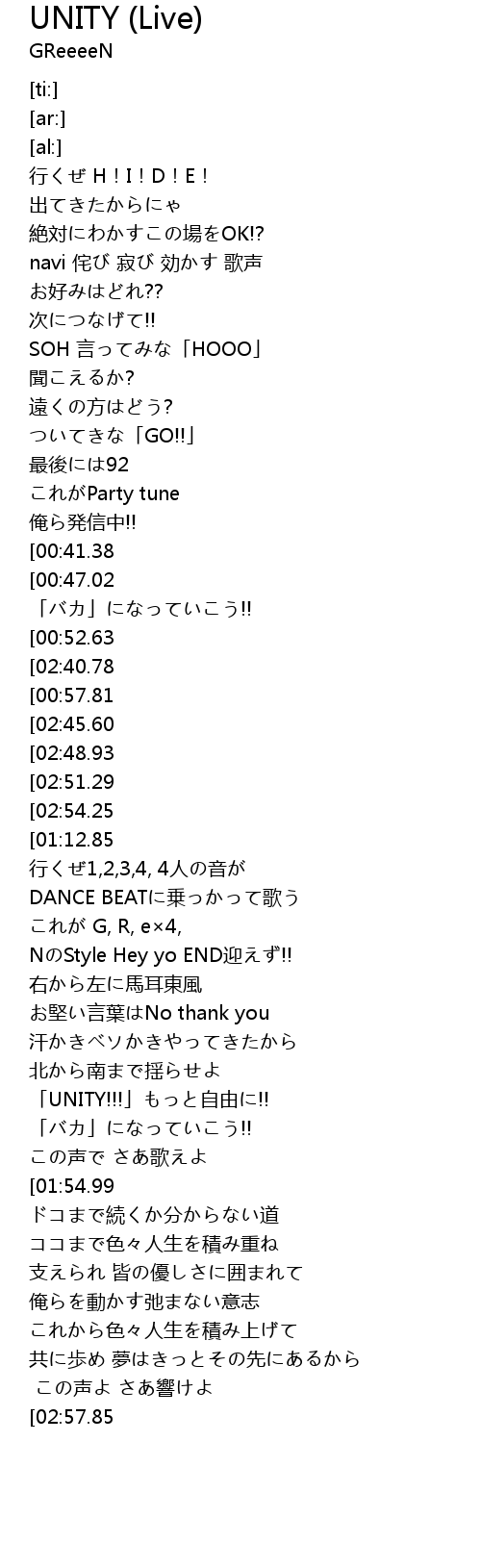 | [01:36.34] | UNITY!!! zì yóu!! |