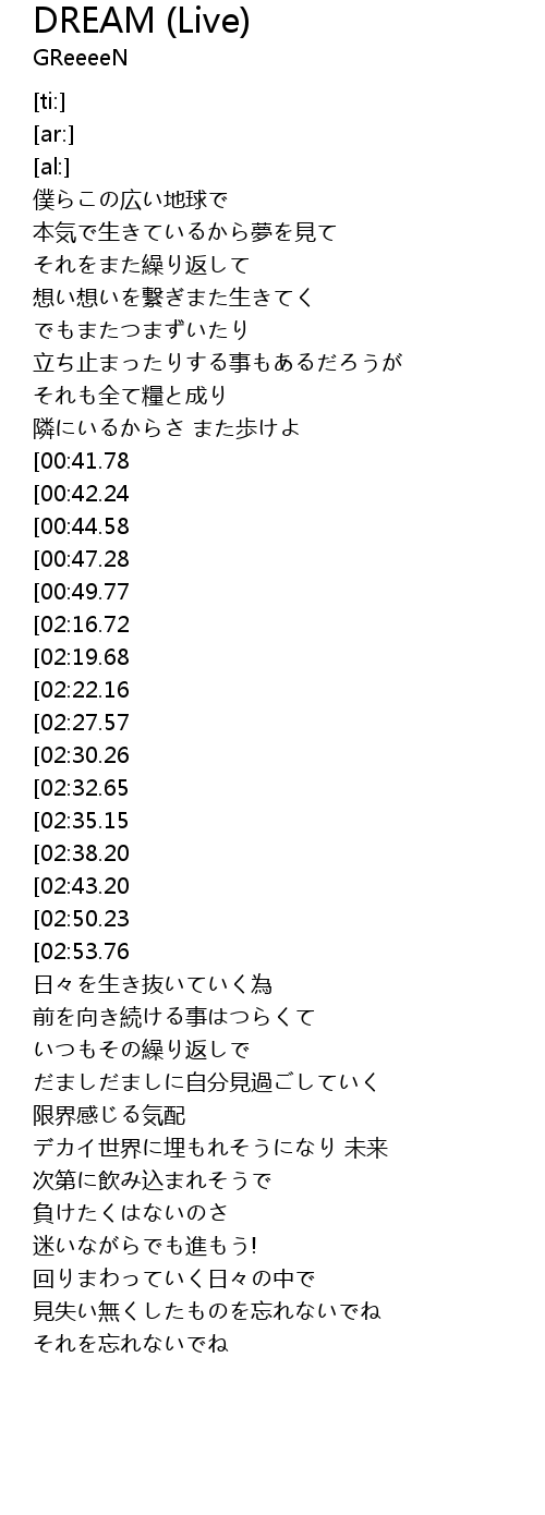 | [00:23.60] | 本気で生きているから夢を見て |