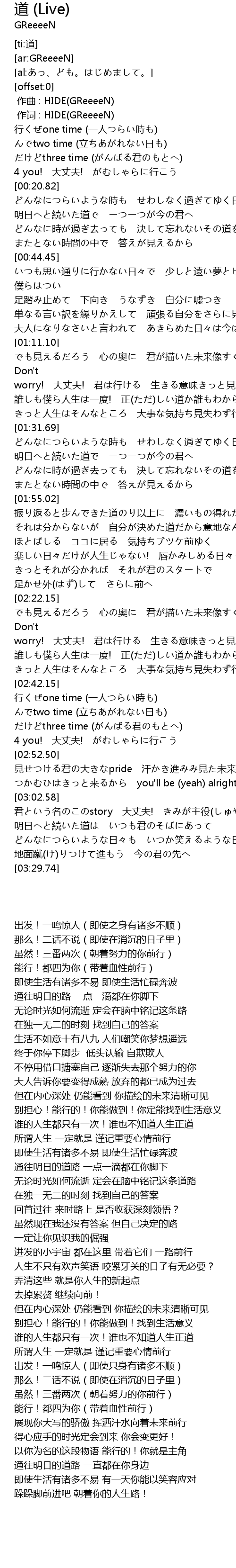 | [00:01.00] | zuò cí : HIDE GReeeeN |
