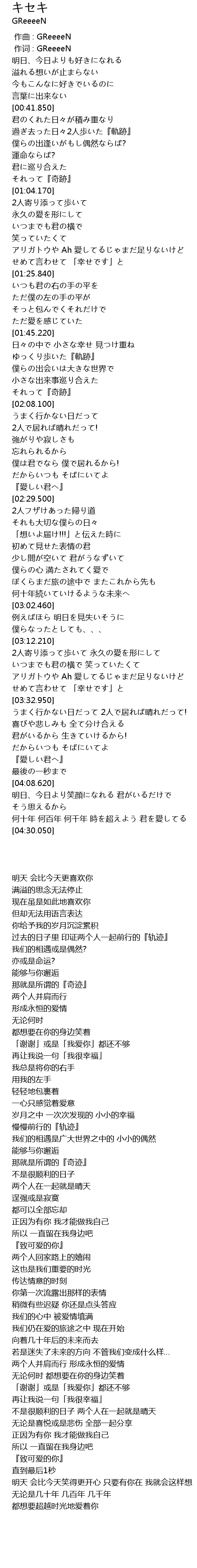 | [04:18.830] | 无论是几十年 几百年 几千年 都想要超越时光地爱着你 |