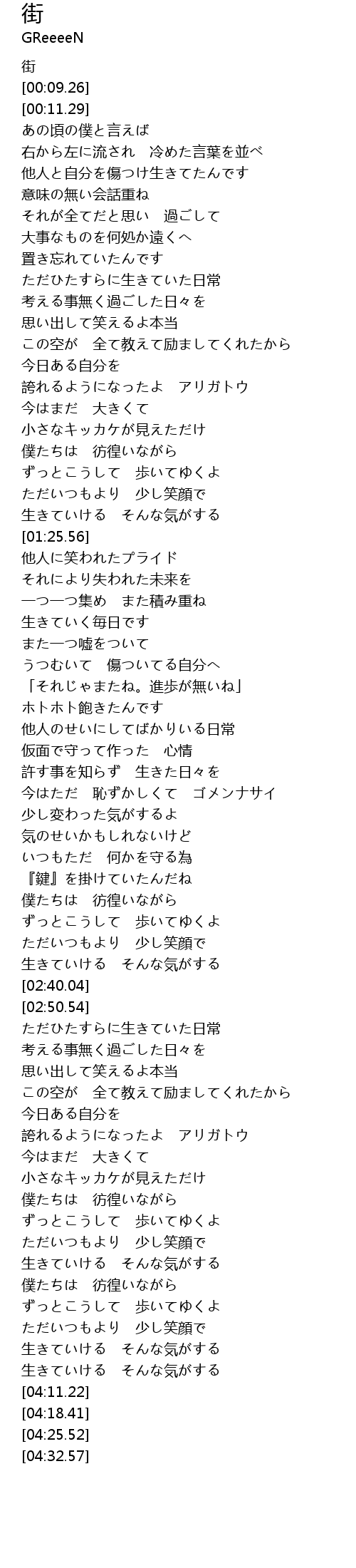 | [03:01.03] | ただひたすらに生きていた日常 |