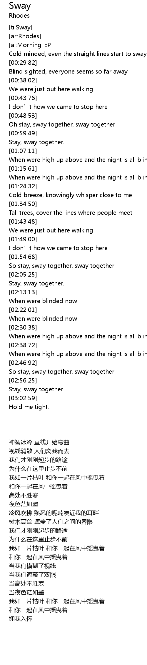 | [01:54.93] | 我如一片枯叶 和你一起在风中摇曳着 |