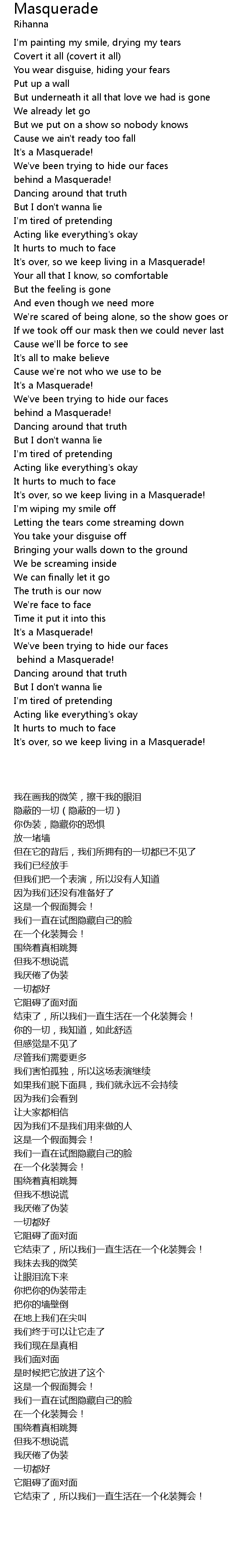 It's over, so we keep living in a Masquerade! |