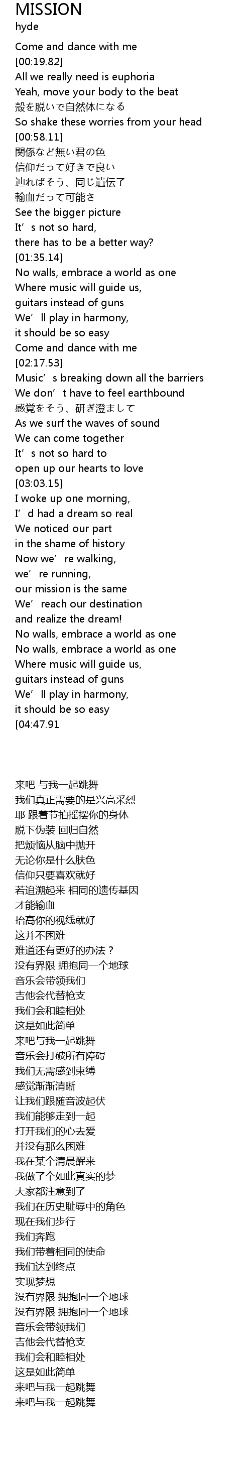 | [04:12.46] | 没有界限 拥抱同一个地球 |