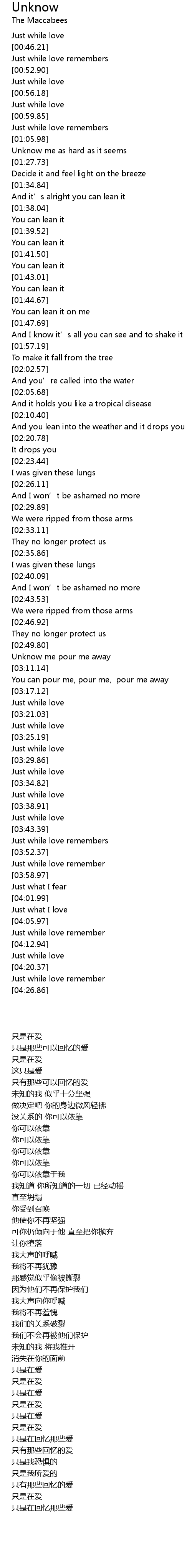 | [03:04.17] | Unknow me pour me away |