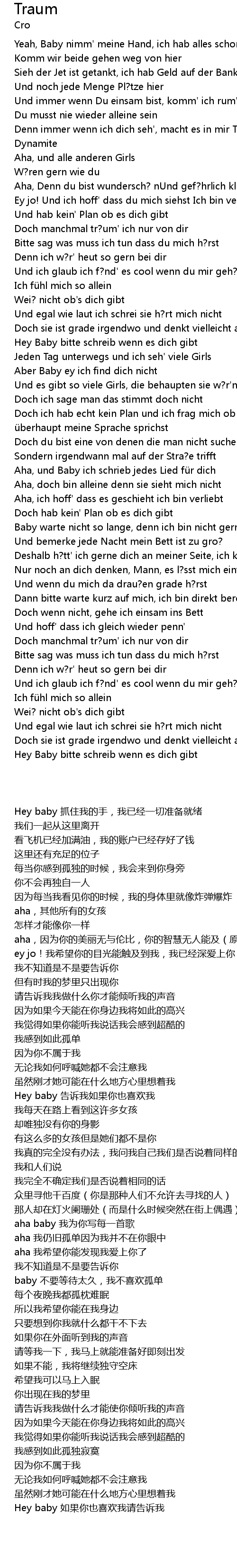 | [01:15.97] | Hey Baby bitte schreib wenn es dich gibt |