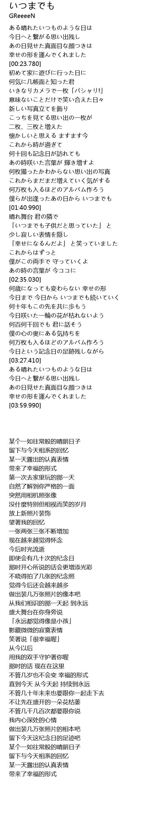 | [01:33.240] | 僕らが出逢ったあの日から いつまでも |