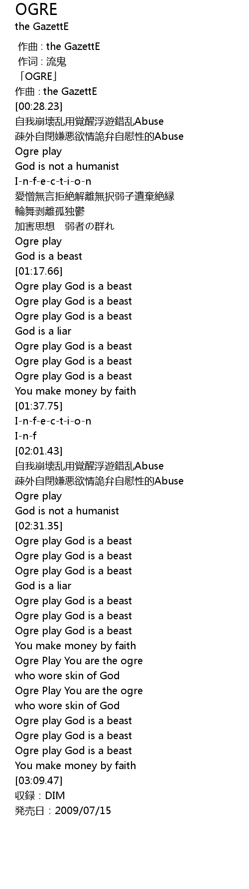 | [00:00.00] | 作曲 : the GazettE |