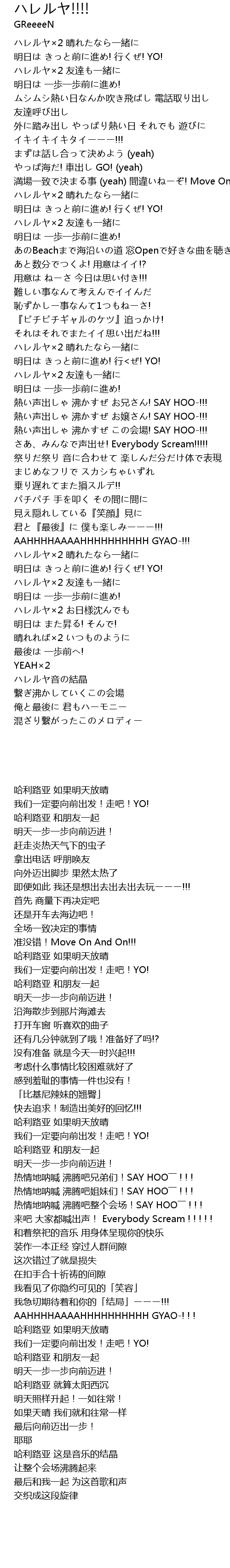 | [02:00.568] | 热情地呐喊 沸腾吧整个会场!SAY HOO―― ! ! ! |