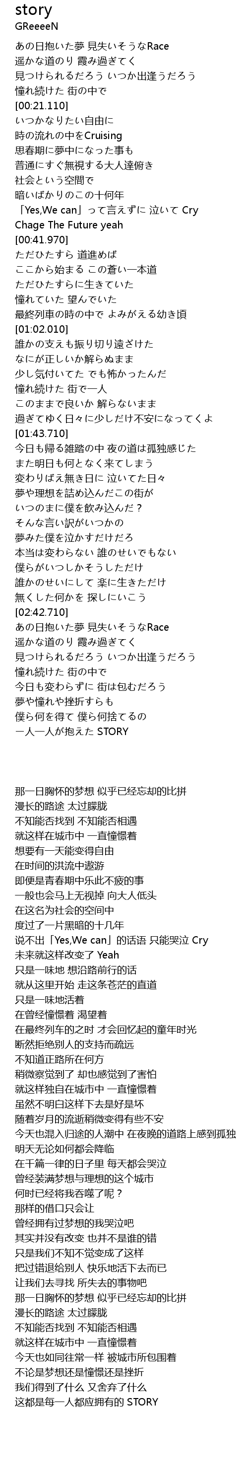 | [02:47.710] | あの日抱いた夢 見失いそうなRace |