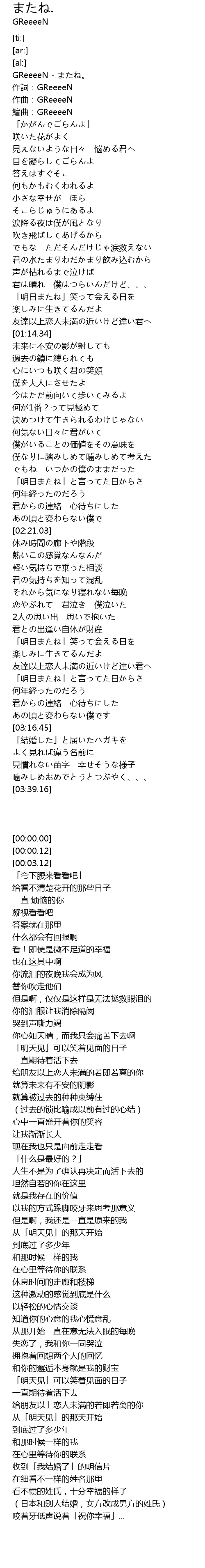 | [03:26.92] | 見慣れない苗字 幸せそうな様子 |