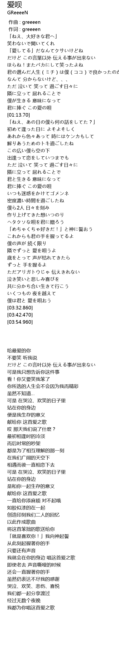 | [00:00.00] | 作曲 : greeeen |