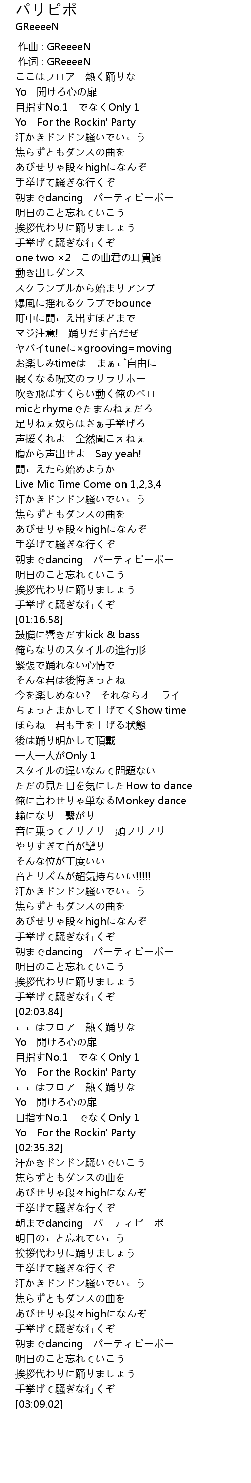 | [02:59.05] | 朝までdancing パーティピーポー |