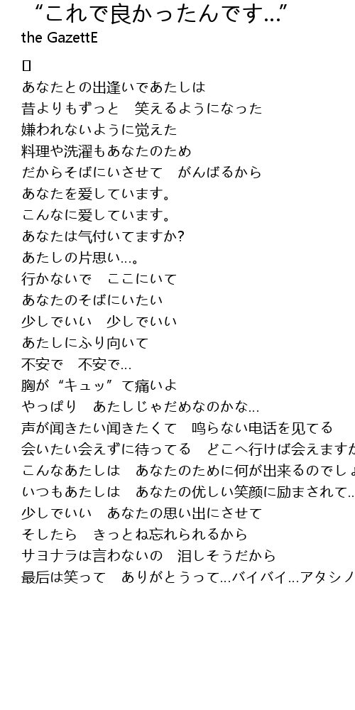 | 最后は笑って ありがとうって…バイバイ…アタシノ片思イ… |