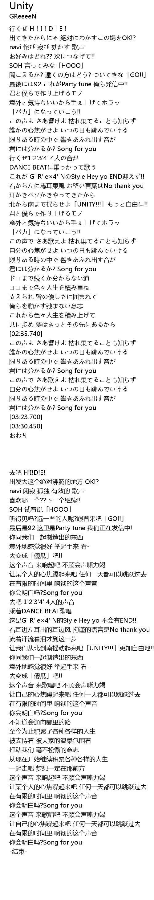 | [01:21.640] | 这是G' R' e×4' N的Style Hey yo 不会有END!! |