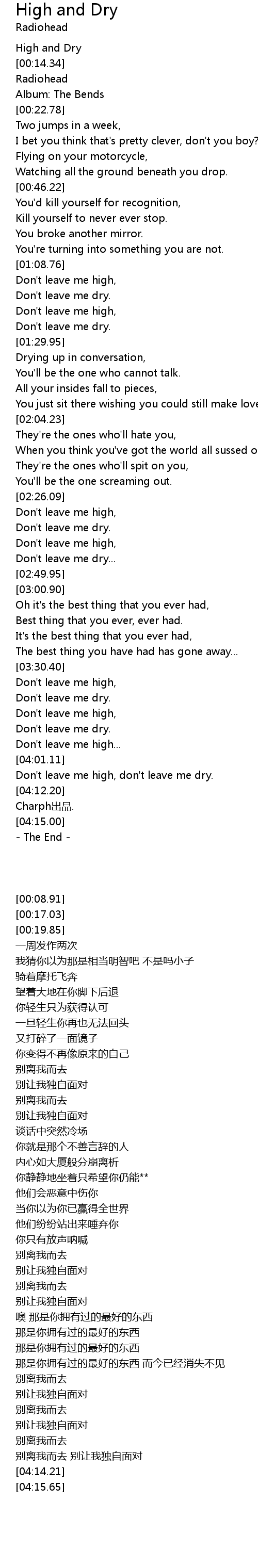 | [00:08.91] | High and Dry |