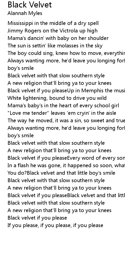 Black velvet if you pleaseEvery word of every song that he sang was for you |