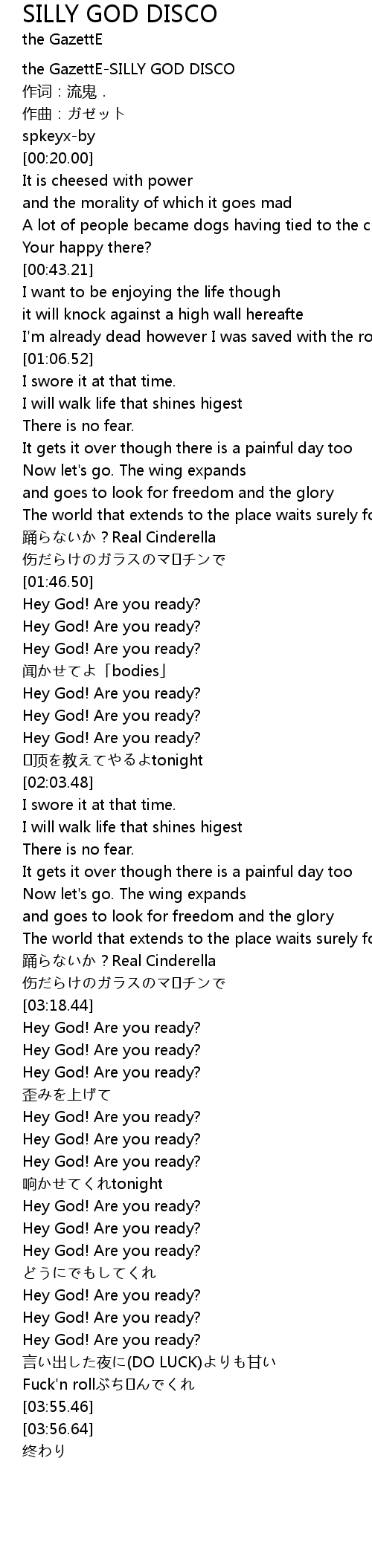| [03:36.56] | Hey God! Are you ready? |