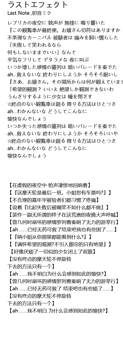 | 歌曲 | ラストエフェクト |