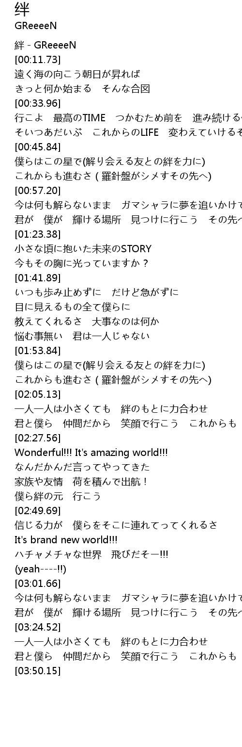 | [00:00.68] | 絆-GReeeeN |
