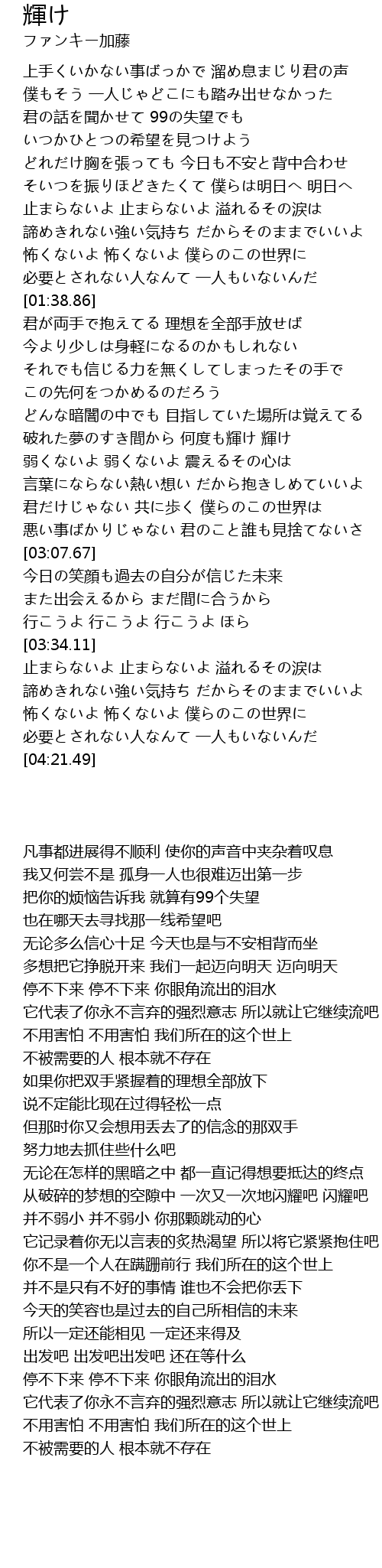 | [02:24.87] | 破れた夢のすき間から 何度も輝け 輝け |