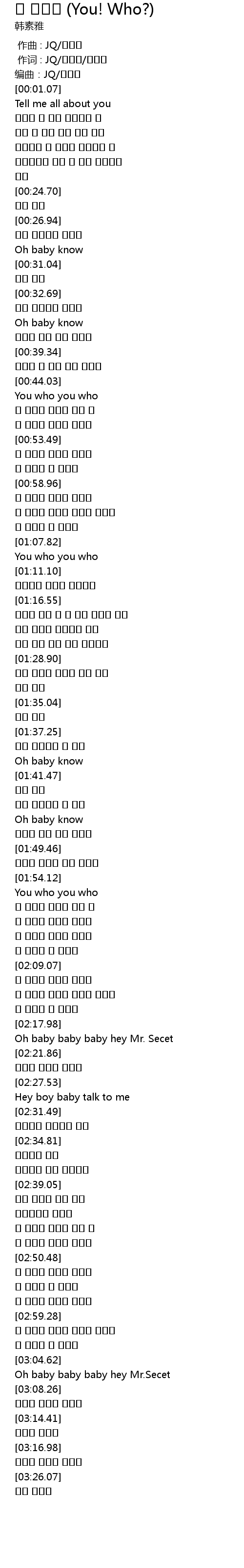 | [03:02.94] | 너 누구니 너 누구니 |