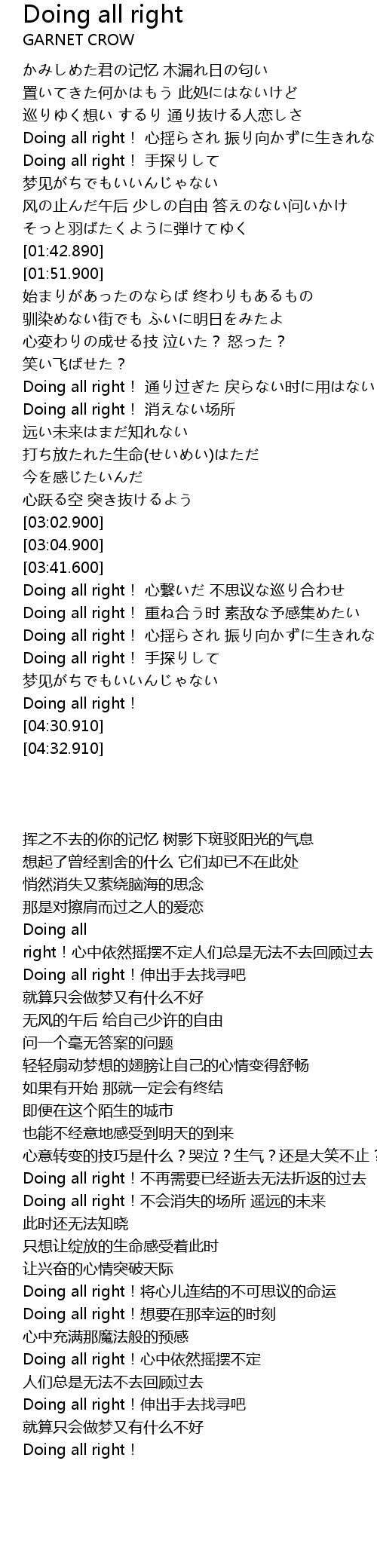 | [02:33.750] | Doing all right!不会消失的场所 遥远的未来 此时还无法知晓 |
