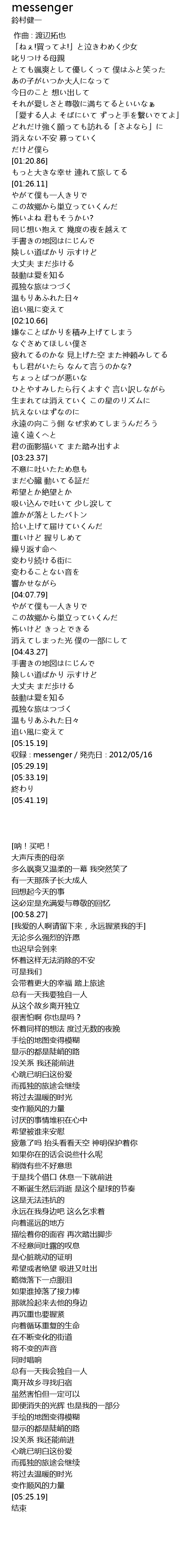 | [05:25.19] | 収録∶messenger/発売日∶2012/05/16 |