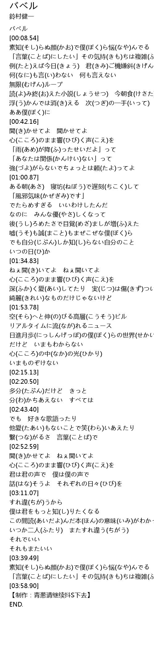 | [03:52.66] | 「言葉(ことば)にしたい」その気持(きも)ちは複雑(ふくざつ)だってこと |