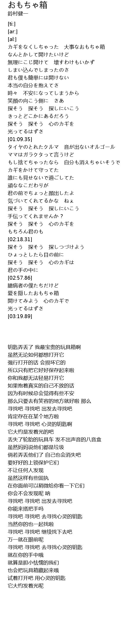 探そう 探そう 心のカギを |